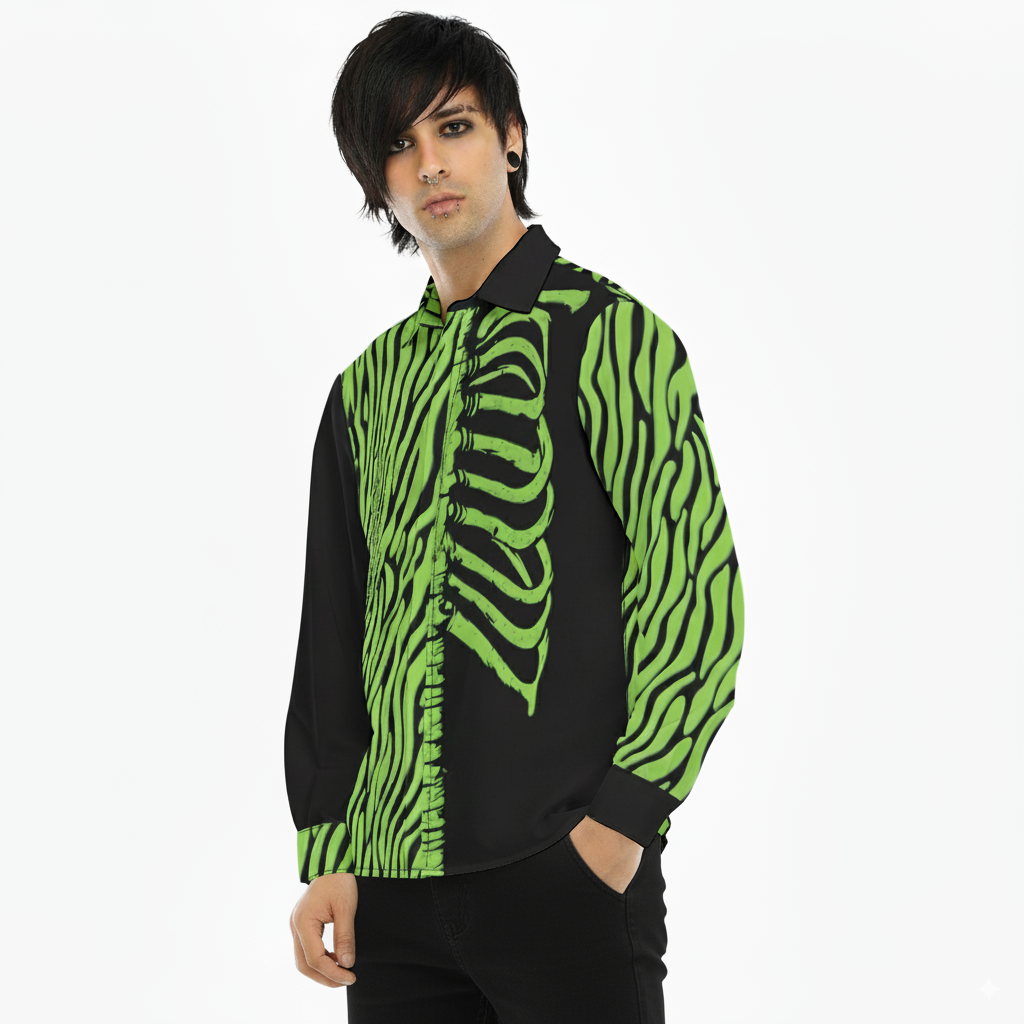 TRISKELETON uses a modern printing technique on this button-down shirt: each piece of the garment is printed beforebeing sewn together, allowing the details of the print to always be correctly placed on the garment.